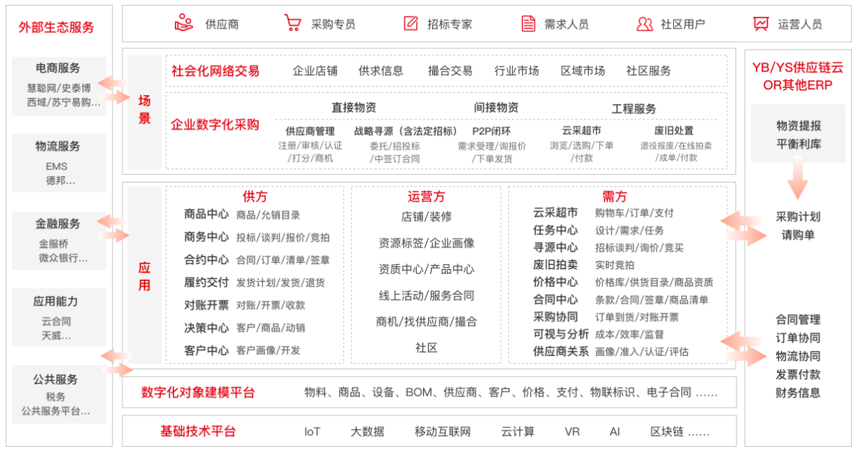 社會(huì)化網(wǎng)絡(luò)交易平臺(tái):以連接、協(xié)同、共享、創(chuàng)新為核心理念,立足需方構(gòu)建涵蓋采購(gòu)尋源(招標(biāo)/談判/詢價(jià))、合同中心、采購(gòu)協(xié)同、云采超市、廢舊拍賣、可視與分析、供應(yīng)商關(guān)系管理的社會(huì)化網(wǎng)絡(luò)交易平臺(tái)