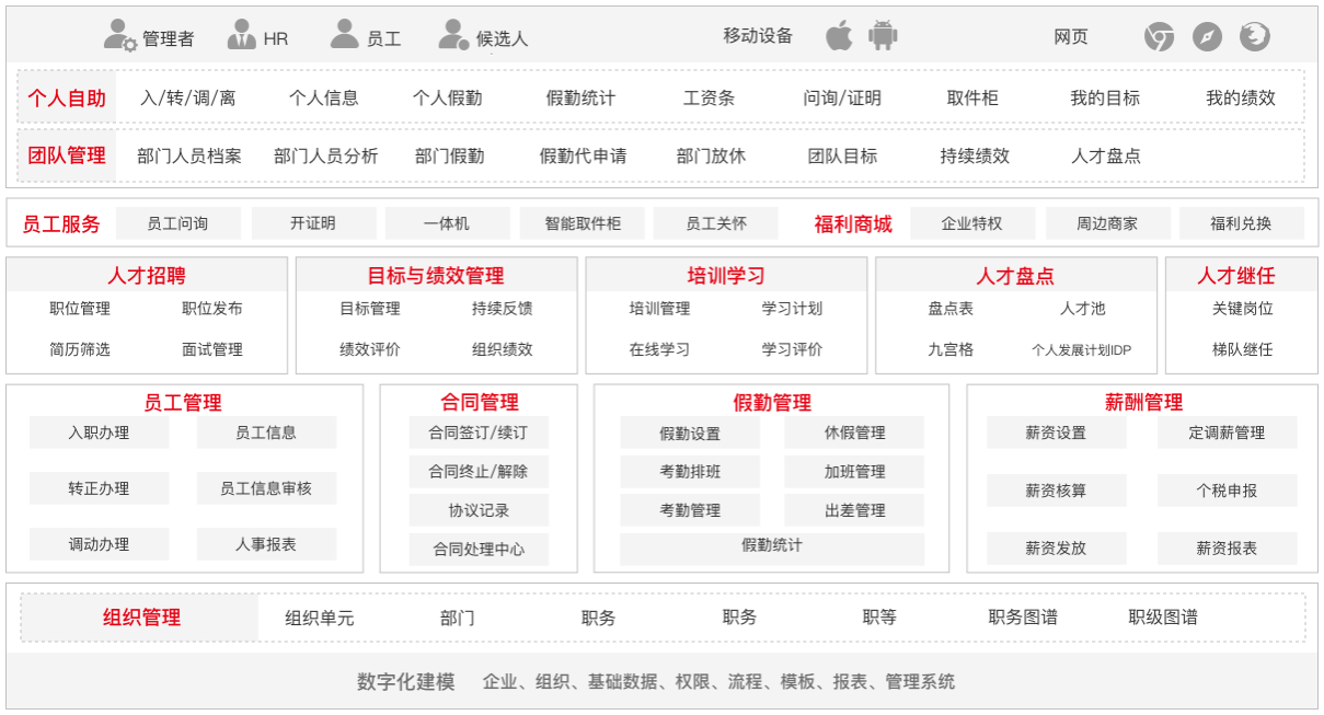 用友人力云面向企業(yè)管理者、全體員工、專業(yè)HR與候選人,通過多端多設備提供覆蓋全面核心人力資源管理、人才管理與人力共享服務的數(shù)智化人力服務