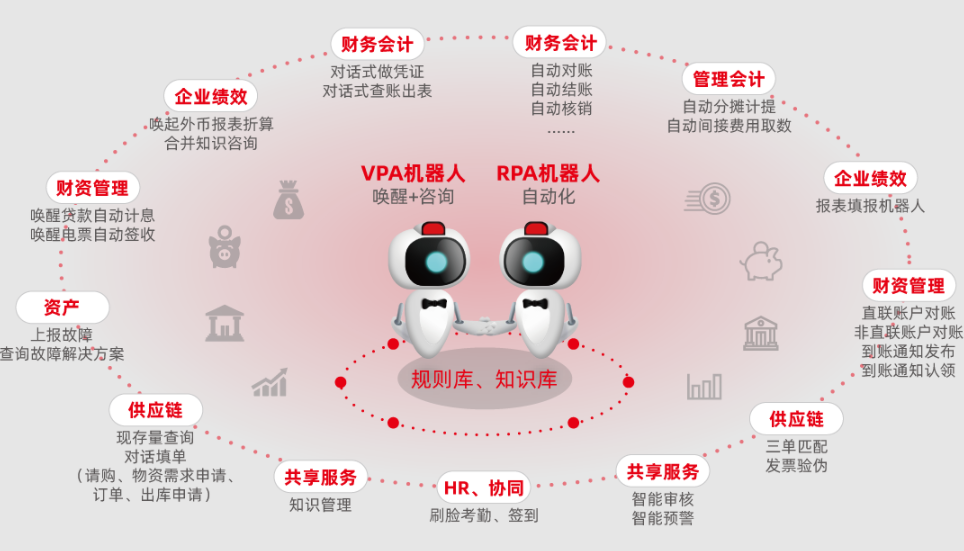 用友NC Cloud 應用人工智能技術(shù)(例如:交互式語音、LBS、OCR技術(shù)),結(jié)合實際業(yè)務場景,全新設計VPA工作助手(人機交互、智能問答......)、RPA流程機器人(自動對賬、結(jié)賬、核銷、發(fā)票驗偽、三單匹配、報表填報......),用AI技術(shù)引領智能應用新方向,重塑用戶新體驗。